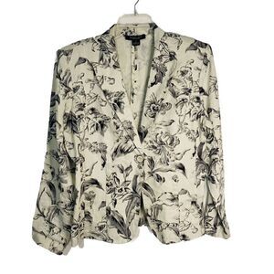 August Silk Beige Black Floral Lightweight Linen Jacket Size 10 3/4 Sleeve