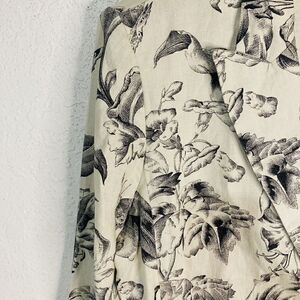 Elevate your wardrobe with this stunning August Silk linen flowers and butterflies with padded shoulders jacket in size 10. The lightweight, unlined linen jacket features a beautiful floral pattern in beige and black, perfect for any occasion whether it's a travel adventure or a casual outing.