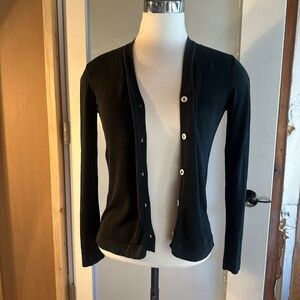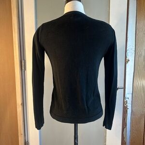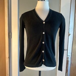August Silk Black Fine Knit Cardigan Top Button-Up V-Neck Small