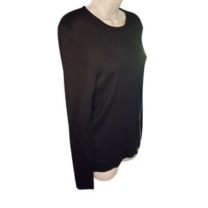 August Silk Black Long Sleeve Knit Top Size Large 100% Silk