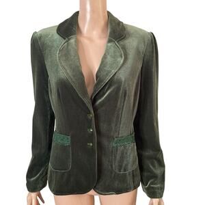 August Silk Blazer Womens 6 Velour Forest Green 3 Button