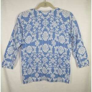 August Silk Brand Blue White Floral Lightweight Sweater Cardigan Size M
