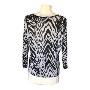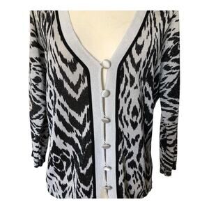 August Silk Cardigan Sweater Black Silver Long Sleeve Top Women's Petite Large