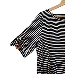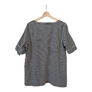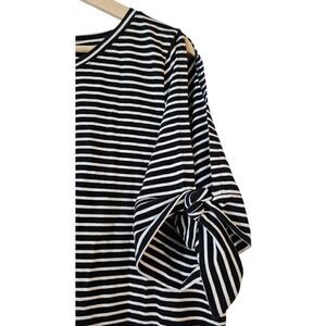 August Silk Cotton Blend Crew Neck Black White Tie Sleeve Tee Size L