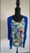 Colorful floral top with vibrant blue neckline. Ideal for a chic ensemble.