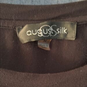This relaxed t-shirt from August Silk features a solid black color and short sleeves, making it a versatile addition to your wardrobe. The asymmetrical style adds a modern touch, while the soft lightweight fabric ensures comfort throughout the day.