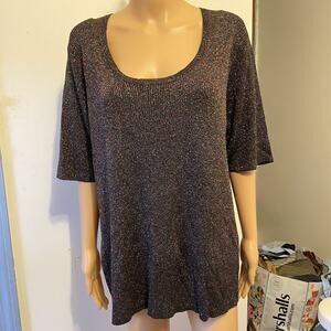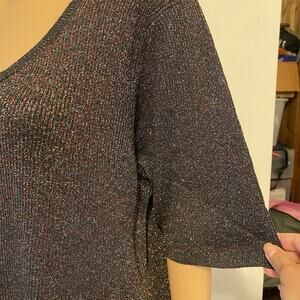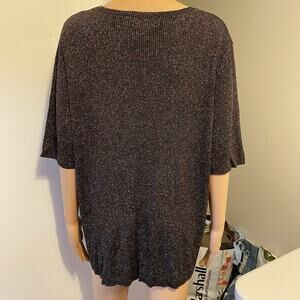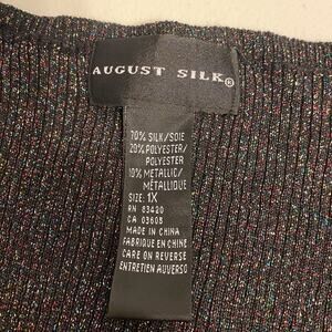 The August Silk Knits Women's Cream Silk Knit V-Neck Pullover T-Shirt in size Large is a luxurious and comfortable top for casual occasions. Made of silk knit fabric with a solid pattern and metallic accents, this T-shirt features a crew neck and short sleeves, perfect for the summer season. The regular fit and 1X size make it a versatile piece for women who appreciate quality and style in their wardrobe.