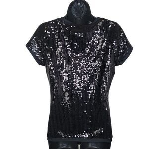 Excellent like new condition. Women's August Silk Knits black sequin top blouse size Medium.