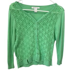 August Silk Lace Sheer Sweater Cardigan Womens Small Green Floral Coquette