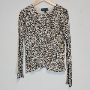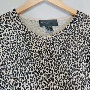 August Silk Leopard 100% Silk Crewneck Cardigan Sweater Sz M Contemporary