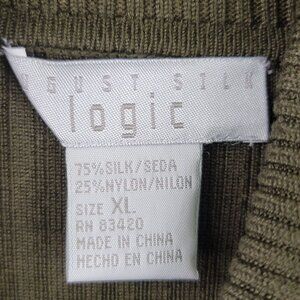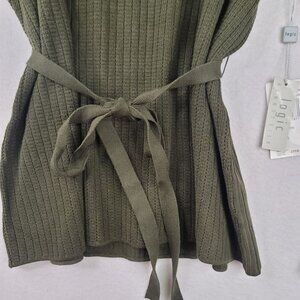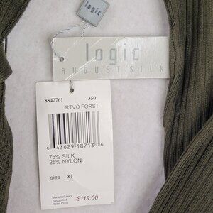 August Silk Logic Ribbed Belted Turtleneck Sweater XL Olive Green Silk/Nylon New