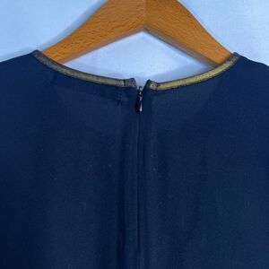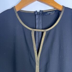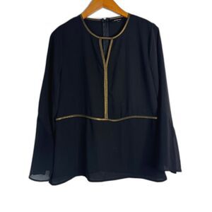August Silk NWT Black Gold Trim Keyhole Bell Sleeve Silky Blouse Size Small