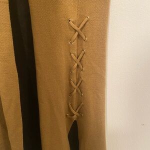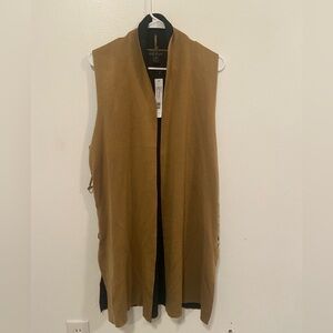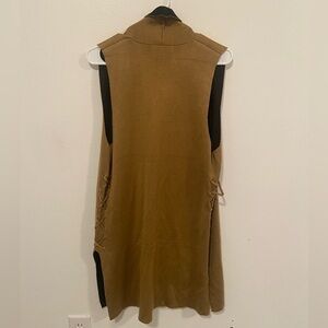 August Silk NWT camel/black open front long line cardigan vest w/ lace up detail
