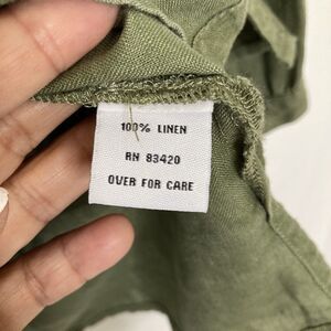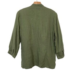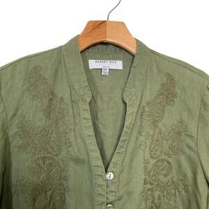 August Silk Options PL 100% Linen Green Blouse Floral Embroidered Button Up Top.