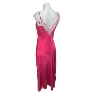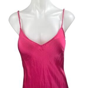 August Silk Pink Sleeveless 100% Silk Satin Vneck Cami Strappy Maxi Slip Dress S
