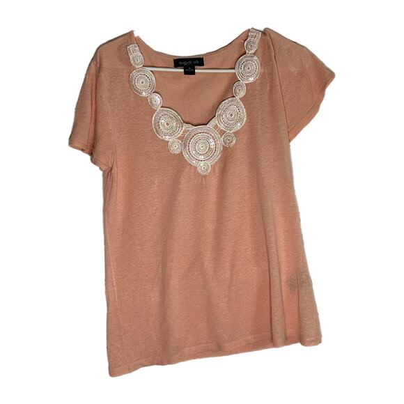 August Silk Pink Top with White Embroidered Neckline, Medium, Pre-owned