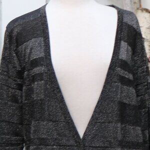 August Silk Plus Size Black Silver Metallic Striped Long Cardigan Sz 2X