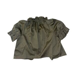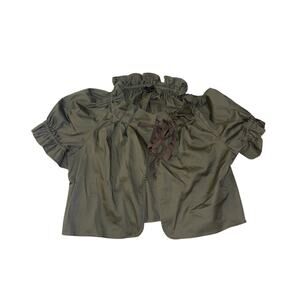 August Silk Puff Short Sleeve Top Tie Front Ruffle Babydoll Blouse Top Size 12