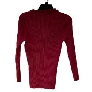 August Silk Raspberry Stretch Sweater with Ruffle Faux Shirt - Large - Fashion