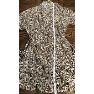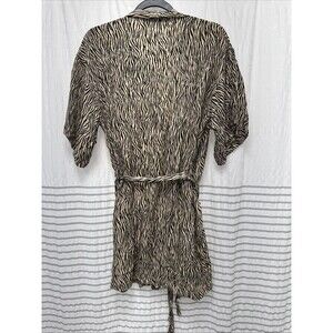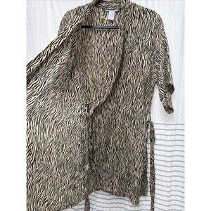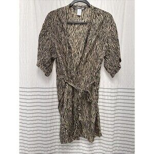 August Silk Robe Womens Medium 100% Silk Animal Print Belted Lightweight Kimono