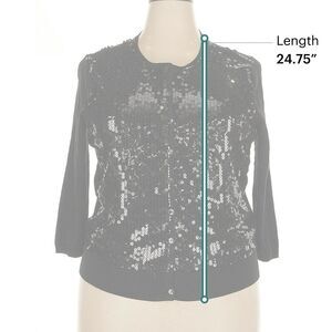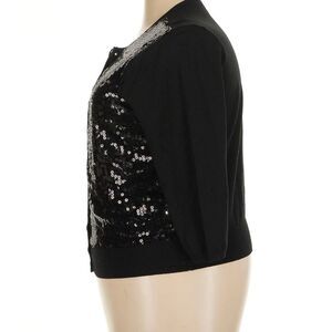 Stylish black sequin cardigan. Perfect for adding sparkle to any outfit.