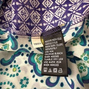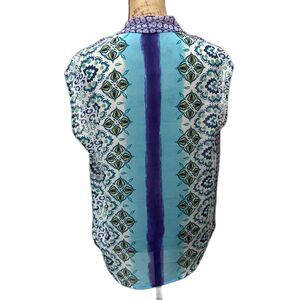 August Silk Surplice Blouse Two Tone Blue Mixed Prints Bohemian Size Medium