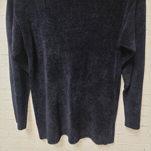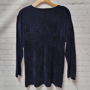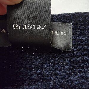 August Silk Pullover Sweater Knit Dark Navy Long Sleeve Round Neck Size P Petite.
