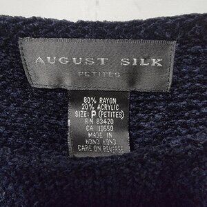August Silk Sweater Knit Dark Navy Long Sleeve Round Neck Womens Size P Petite