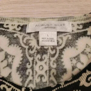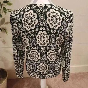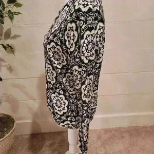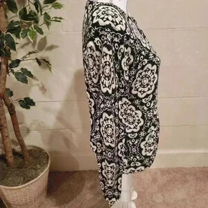 August Silk Sweater Size LARGE Black & White Geometric Cardigan Button Up