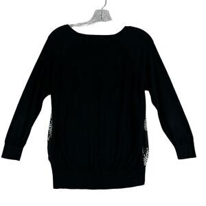 August Silk Sweater Top Womens Medium Black Check Long Sleeve