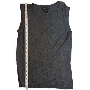This is a August Silk sweater vest in size Large for women, featuring a solid gray color with a rib knit pattern. Made of a wool blend, this sleeveless vest has a tight-knit style and a crew neck neckline. It is suitable for travel, casual, and business occasions, with a slim fit and a preppy geeky style, perfect for the winter, fall, and spring seasons. Measures about a 31-inches long chest and is about 22 inches long.