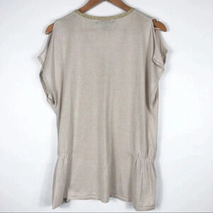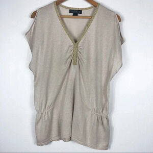 🍁 August Silk Tan Gold Cold Shoulder Dolman Top