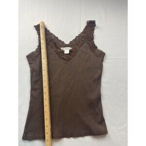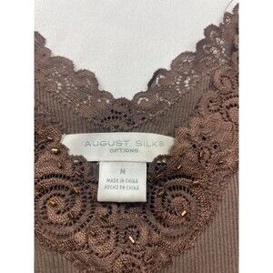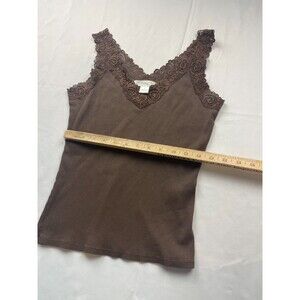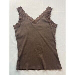 August Silk Tank Top Size Medium Brown V-Neck Lace Trim Ribbed Y2K 90s Casual