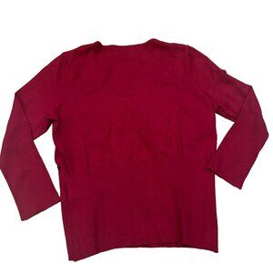 August Silk VNeck Sweater Top Marron Red with Black and Gold Braid Trim Womens M
