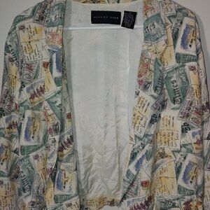 August Silk Vintage 80s Double Breasted Silk Brown Bomber Look Jacket Size M