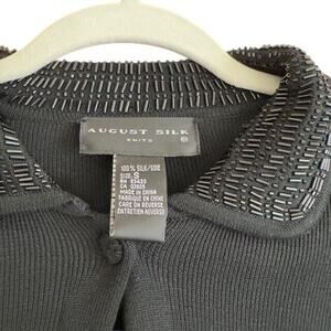 August Silk Women Cardigan Button Up Long Sleeve 100% Silk SMALL BEADED Sweater