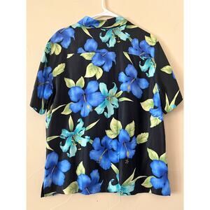 August Silk Women's 100% Silk Hawaiian Pattern Button Up Blouse - Size L
