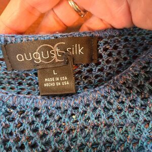 August Silk Women's Blue Metallic Open knit Pullover 3/4 Sleeve Sweater Size L