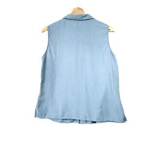 August Silk Women's Blue Sleeveless Button Down Silk Top Size Large