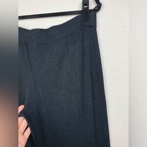 August Silk Women's Large Black Silk Wool Blend Straight Leg Pants Pull On Knit Loungewear Neutral Minimalist Casual Classic Travel