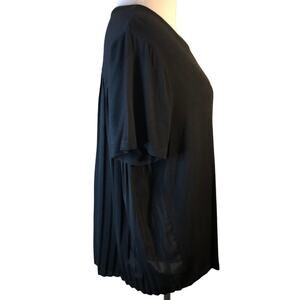 August Silk Womens Sz L Black Sheer Pleated Back Short Sleeve Blouse Pullover