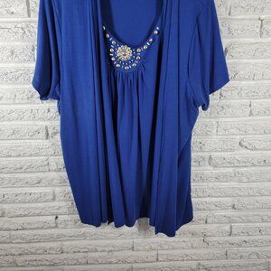 August Silk Womens Top 3X Plus Tunic Short Sleeve Blue Studded BLU177E