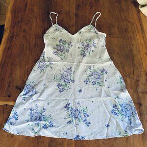 August Silk Womens Vintage Y2K Slip Dress Sz Medium Blue Floral Cottagecore Boho