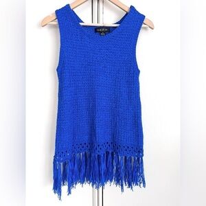 August Silk Woven Tank Top Fringe Royal Blue Size Medium Boho Festival Hippie