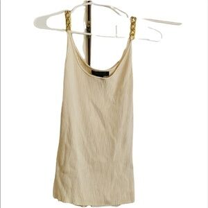 Elegant gold chain strap tank top. Does have a spot on the back . Not noticeable when tucked in. It has been circled for disclosure . Please read the description ❗️❗️❗️
