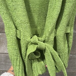 August Silk green baby puff sleeved adjustable sweater cardigan size Large