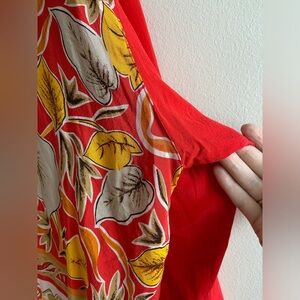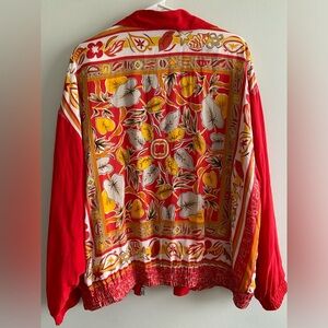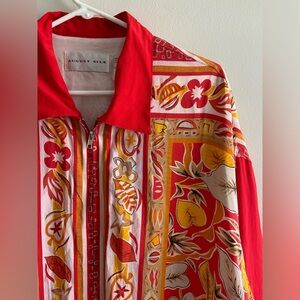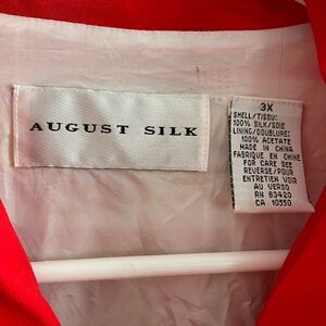 August Silk red floral print lightweight silk zip up jacket size 3XL
