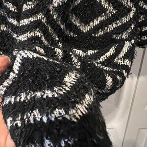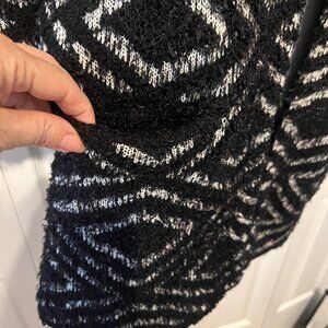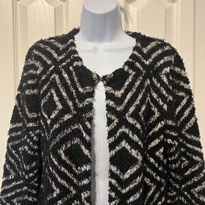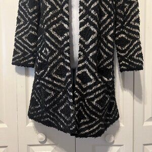 August Silk-Women's Sz. Med Open Front Black/White 3/4 Sleeves Cardigan Sweater