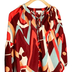 * August Sky by Anthropologie Geometric Print Relaxed Fit Peasant Boho Blouse