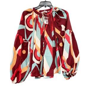 August Sky for Anthropologie Bright Abstract Print Long Sleeve Blouse Size M